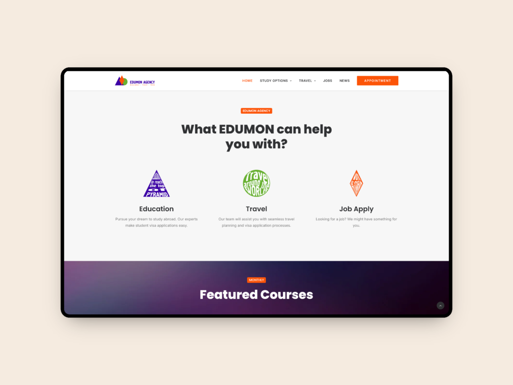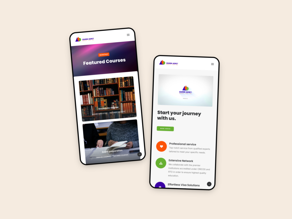 The EDUMON website was built to balance user-friendliness with operational control — offering clients transparency and admins flexibility throughout the entire visa process.