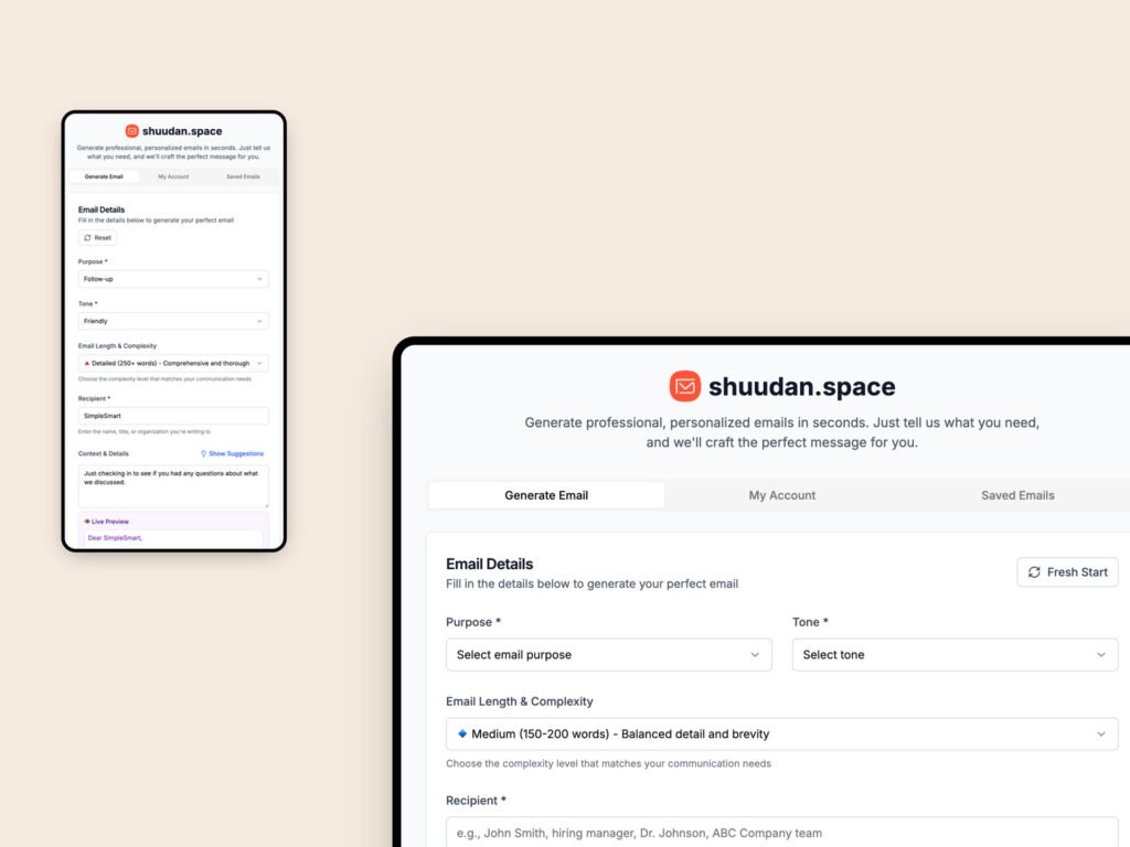 Shuudan.space is a multilingual AI-based web application designed to help users write, edit, and enhance emails more effectively. The platform serves as a smart email assistant that combines natural language understanding with productivity-focused features — ideal for personal, business, and customer communication.