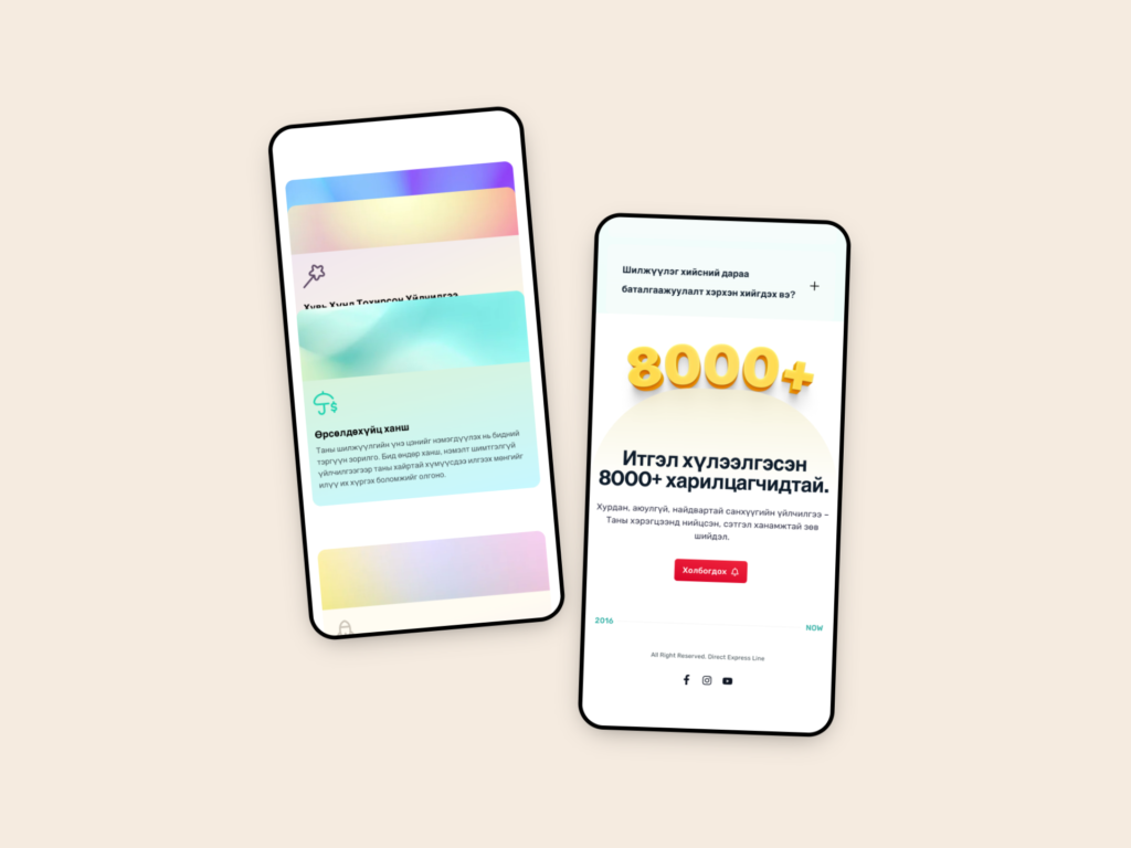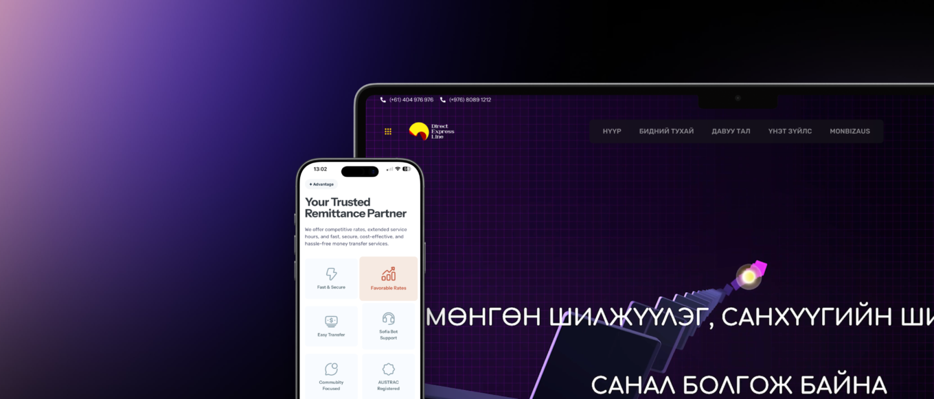 The website was designed to be clean, fast, and user-focused — clearly presenting service information, transfer benefits, and currency exchange rates in both English and Mongolian. It supports easy navigation, mobile responsiveness, and secure user onboarding through an external dashboard system.